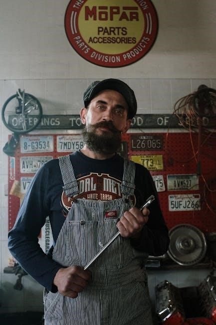 Diagnosing issues with the Tennant T300e involves a systematic approach. Start by reviewing error codes displayed on the control panel, as they often indicate specific malfunctions. Next, consult the parts manual to locate components related to the error. Inspect the solution and recovery tank systems for blockages or leaks. Check the brush and pad driver assembly for wear or misalignment. Test the squeegee and water pickup system for proper function; Ensure electrical connections are secure and verify battery charge levels if applicable. Use the manual’s diagrams to trace flow paths and identify potential failure points. Document findings to streamline repairs and minimize downtime. Always follow safety precautions before performing diagnostics.
